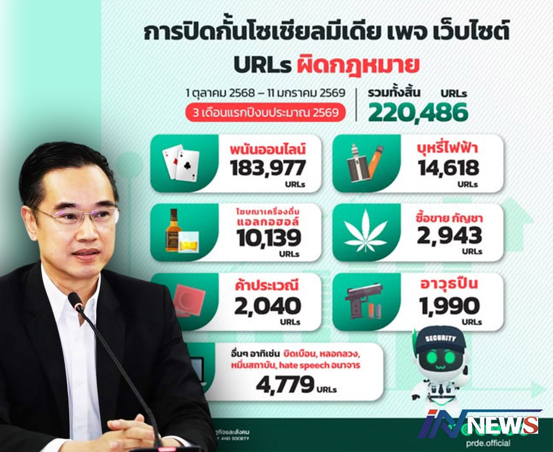 กรุงเทพฯ-ดีอี เผยผลปิดกั้น URLs ผิดกฎหมาย 3 เดือน 2.2 แสนรายการ พนันออนไลน์ พุ่งสูงกว่า 1.8 แสนรายการ