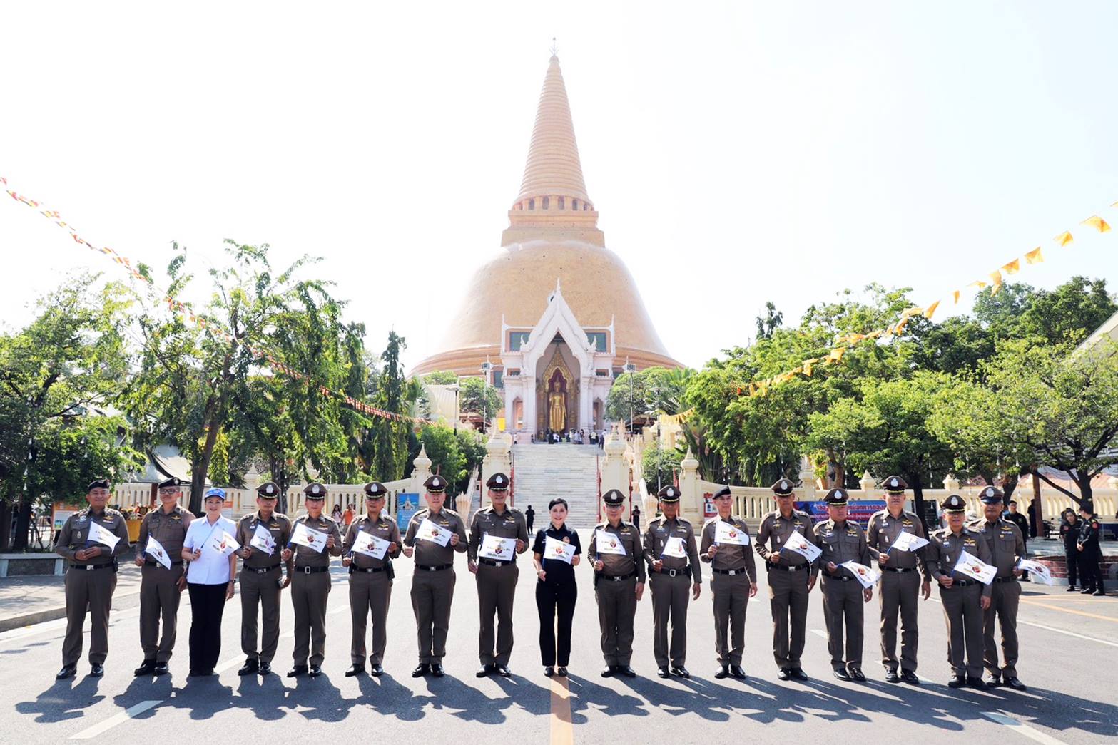 ตร.นครปฐมจัด 'นครปฐม1หมวก1น้ำใจ พิทักษ์ภัยทางถนน'