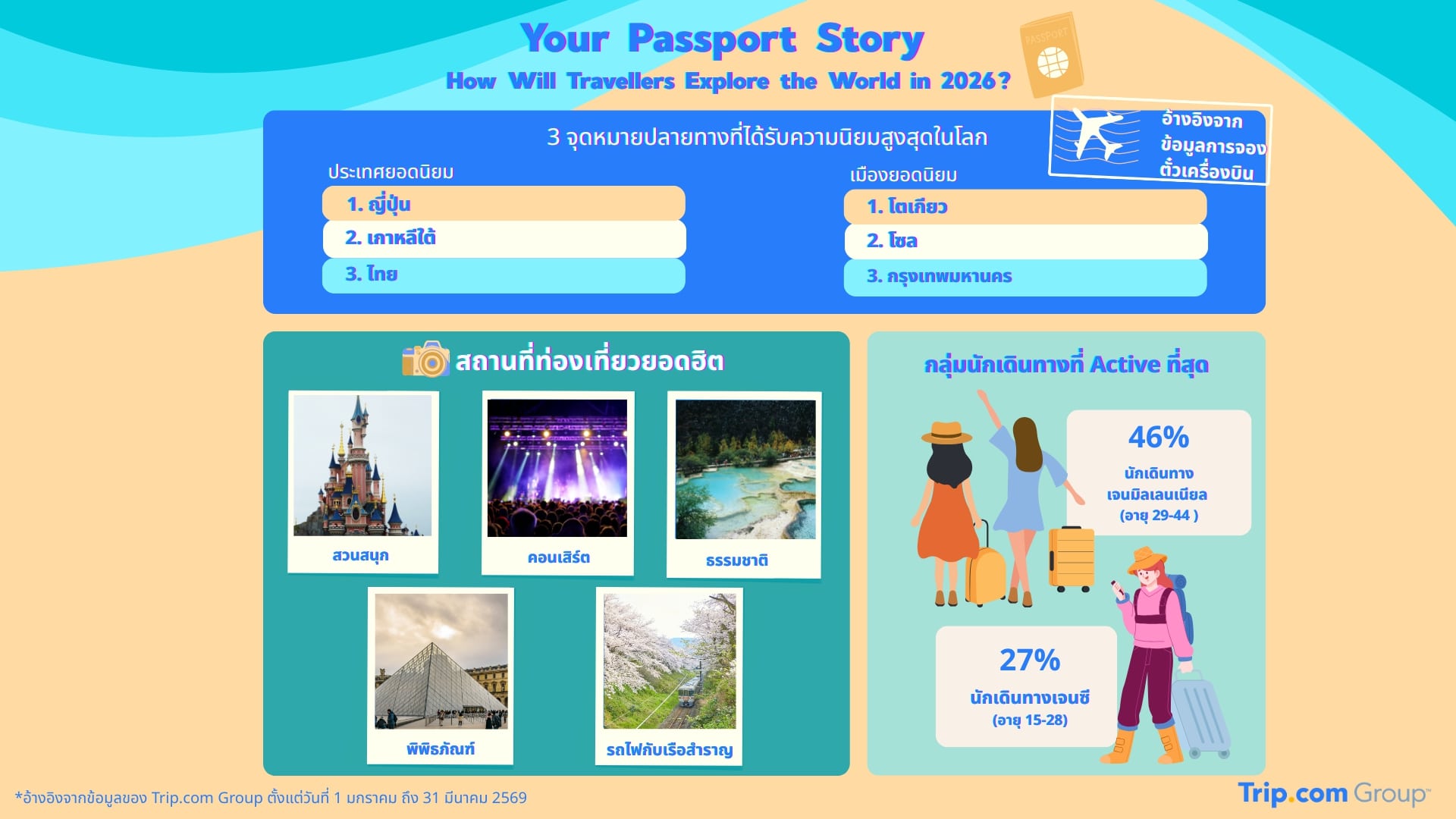 Trip.com เปิดเทรนด์การท่องเที่ยวปี69 เที่ยวไทยยังแรงติดTop3จุดหมายสำคัญ