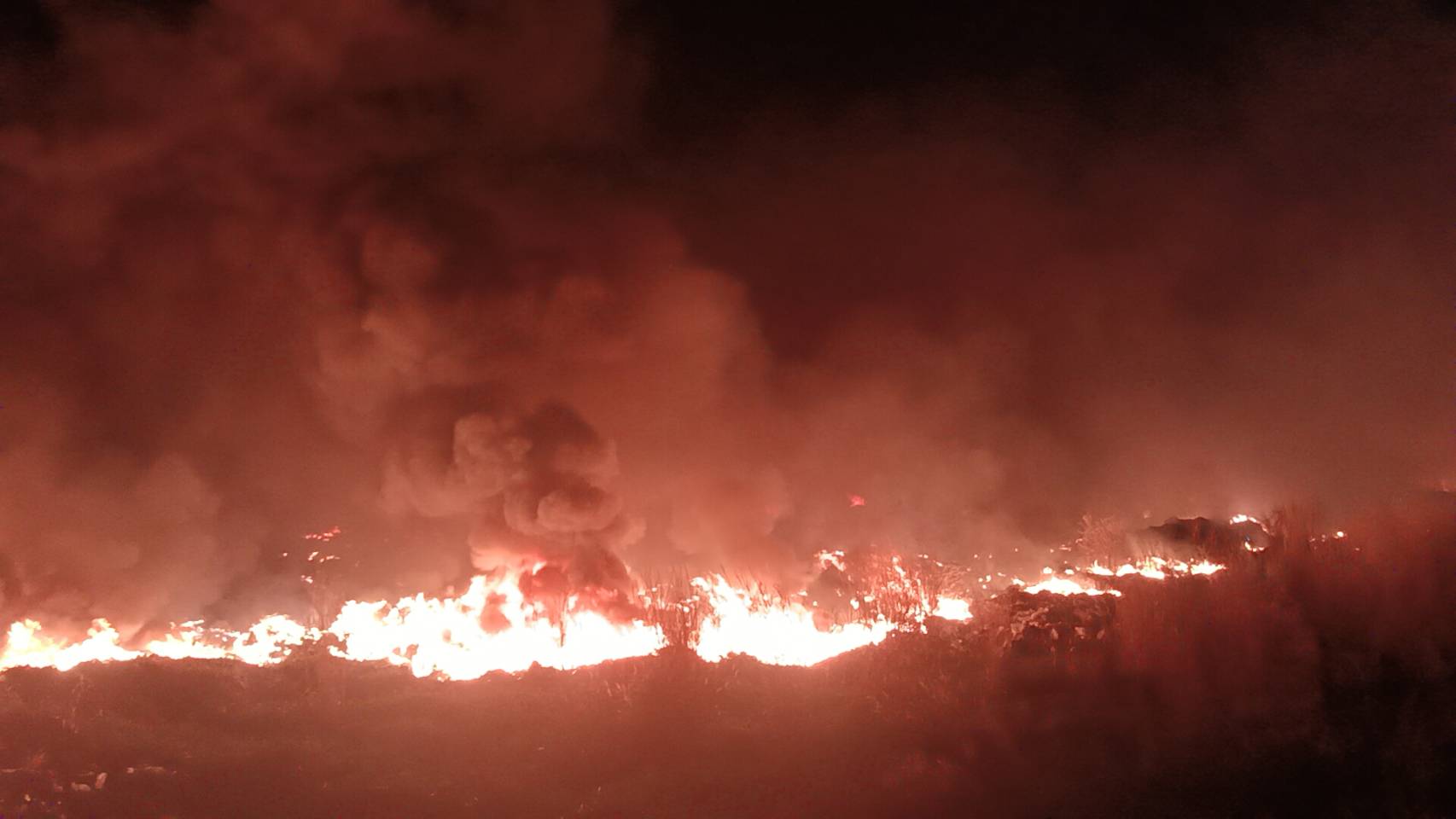 ปราจีนบุรี-ระวังภัย! ไฟโหมไหม้บ่อขยะลูกรังที่มีการลักลอบทิ้งเศษขยะอิเล็กทรอนิกส์ของภาคเอกชนที่อยู่ระหว่างถูกอายัด ย่านนิ...