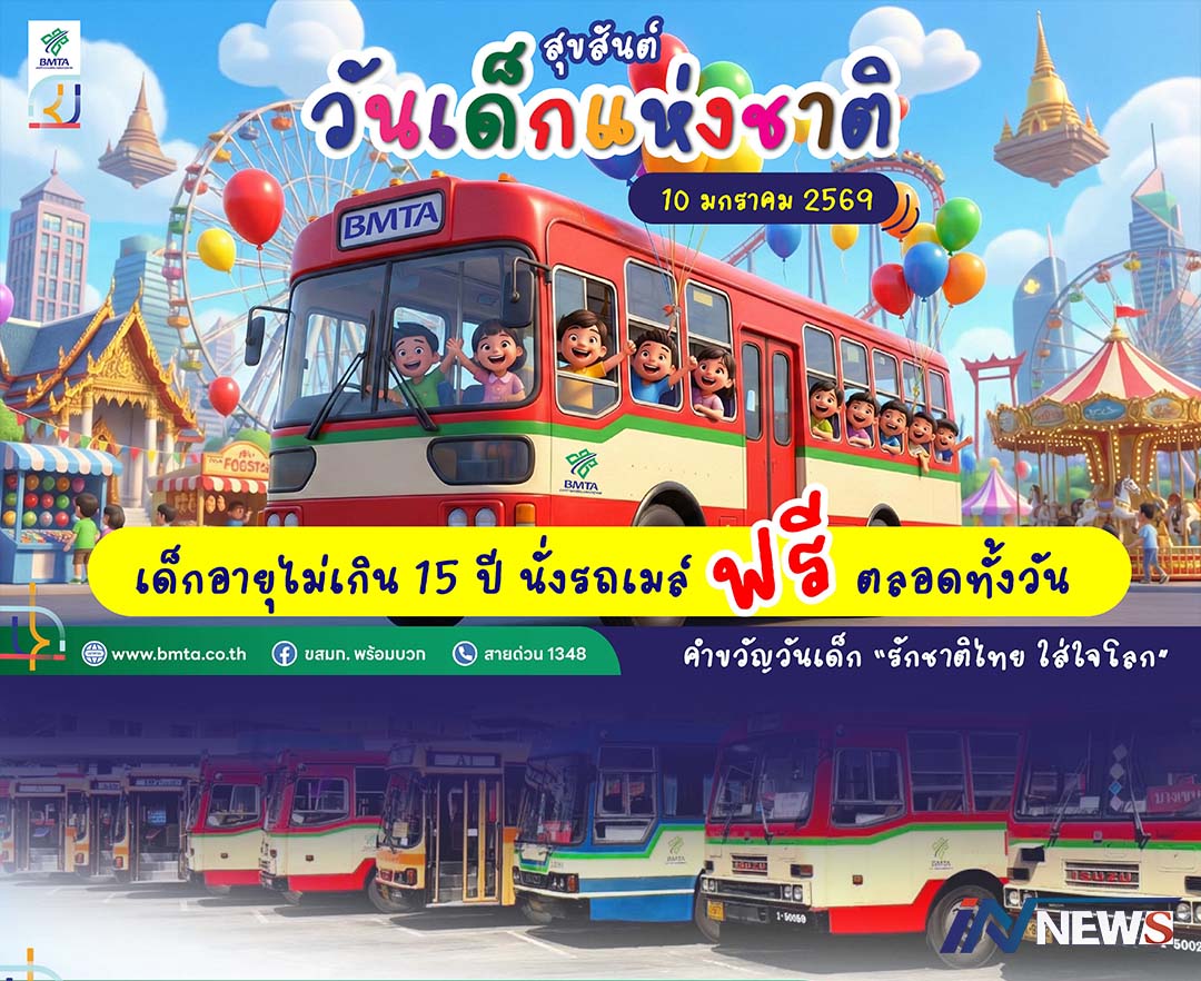 กรุงเทพฯ-ขสมก. มอบของขวัญวันเด็กแห่งชาติ ประจำปี 2569 (10 มกราคม 2569) เยาวชนอายุไม่เกิน 15 ปีบริบูรณ์ ขึ้นรถเมล์ฟรีทุกค...