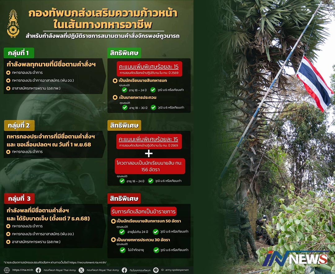 ทบ.เพิ่มสิทธิพิเศษกำลังพลที่ผ่านศึกสู้รบ ตามคำสั่งจักรพงษ์ภูวนารถสู่ทหารอาชีพ