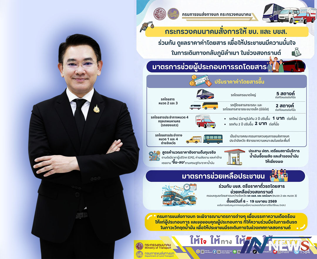กรุงเทพฯ-บขส. จัดรถโดยสารวันละ 7 พันเที่ยว รถเสริมรองรับเดินทางเทศกาลสงกรานต์ 2569 วันละ 1.8 แสนคน สะดวก ปลอดภัยทุกเส้นท...