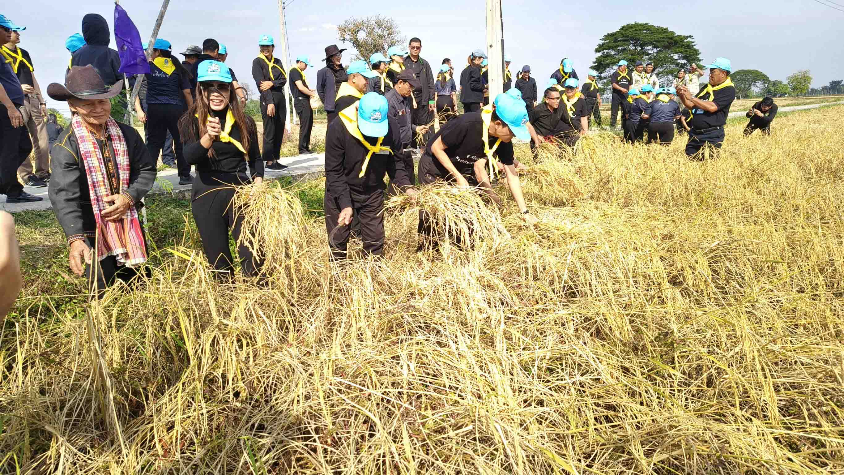 ผู้ว่าฯศรีสะเกษนำเกษตรกร-จิตอาสาร่วม เก็บเกี่ยวข้าวแปลงนาพื้นที่ส่วนพระองค์