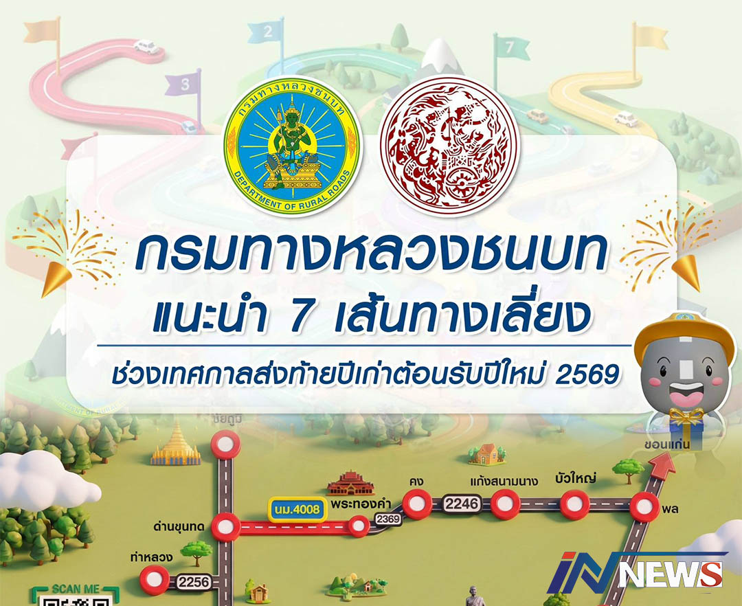 กรุงเทพฯ-กรมทางหลวงชนบท แนะนำ 7 เส้นทางเลี่ยงช่วงเทศกาลปีใหม่ 2569 เพื่อบรรเทาการจราจรบนถนนสายหลัก พร้อมอำนวยความสะดวกใน...