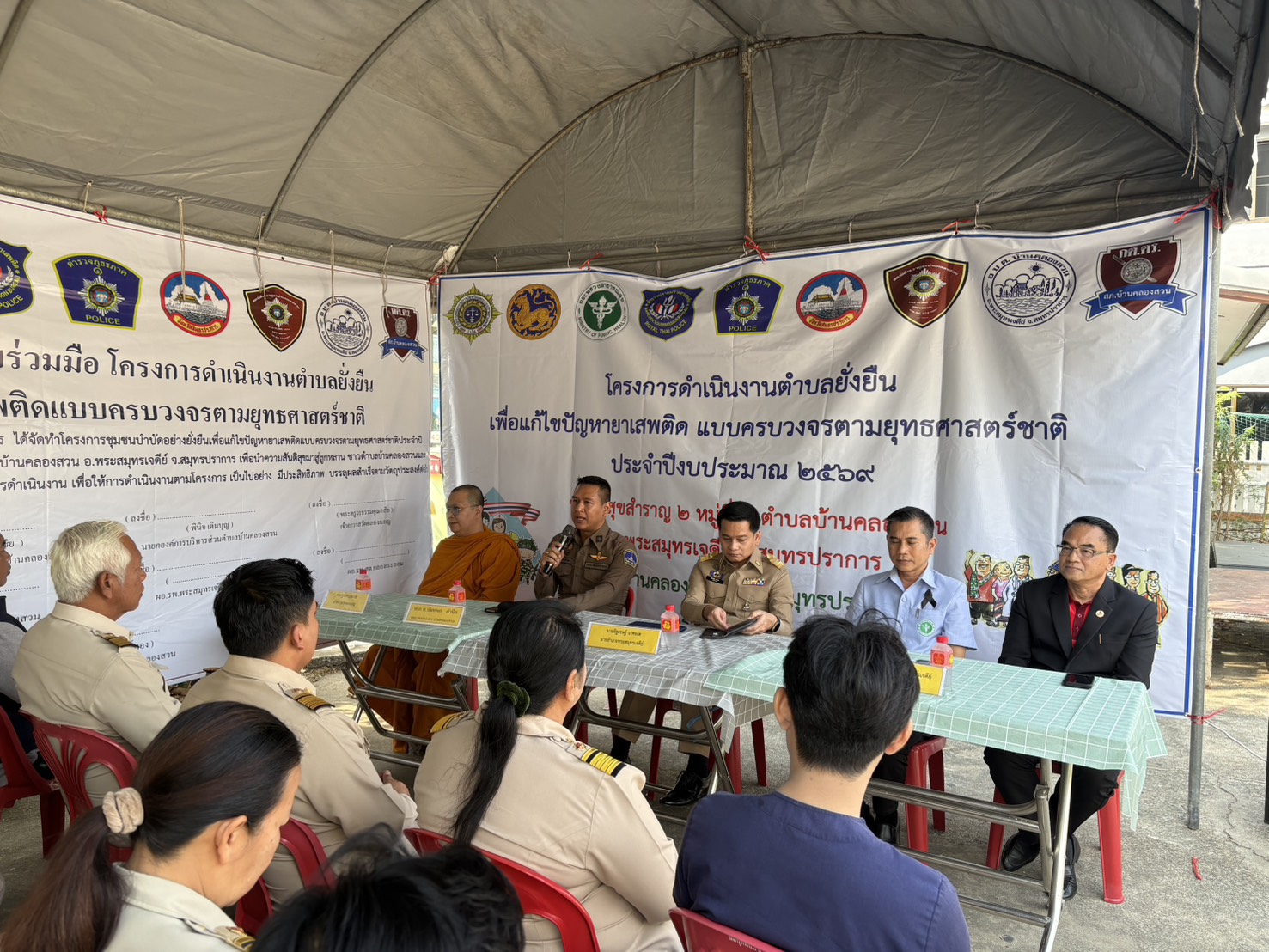 สมุทรปราการ-สภ.บ้านคลองสวน เปิดโครงการตำบลยั่งยืนร่วมบูรณาการฝ่ายปกครอง ผู้นำชุมชนและสาธารณสุข เร่งแก้ปัญหายาเสพติด