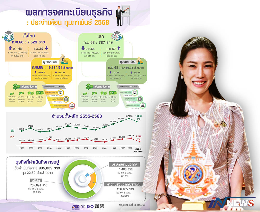 ขาขึ้น!ยอดจดบริษัทพุ่งก.พ.68เดือนเดียว กว่า7.5พันรายแนวโน้มขยายตัวเพิ่มขึ้นอีก