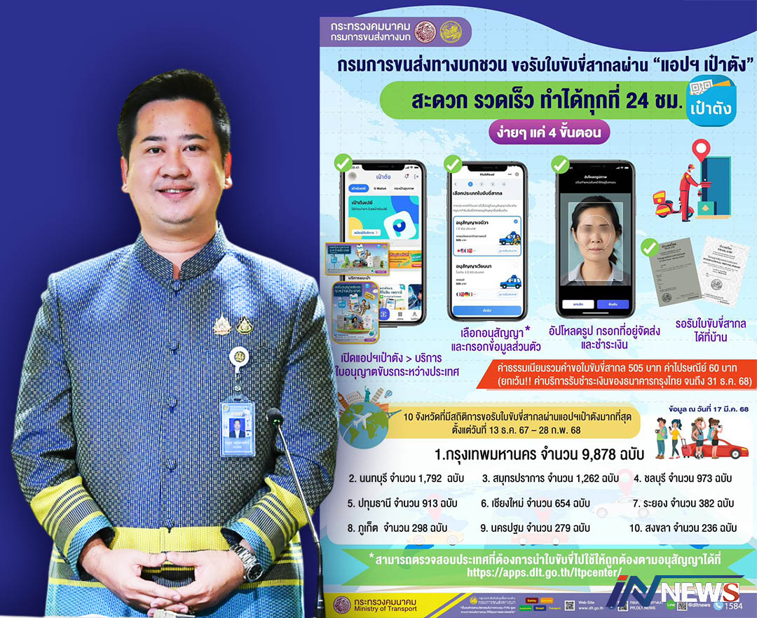 กรุงเทพฯ-ล้ำได้อีก เปิดบริการขอรับใบอนุญาตขับขี่สากลผ่านแอปฯ เป๋าตัง สะดวก รวดเร็ว ได้แล้วตลอด 24 ชั่วโมง รอรับที่บ้านไม...