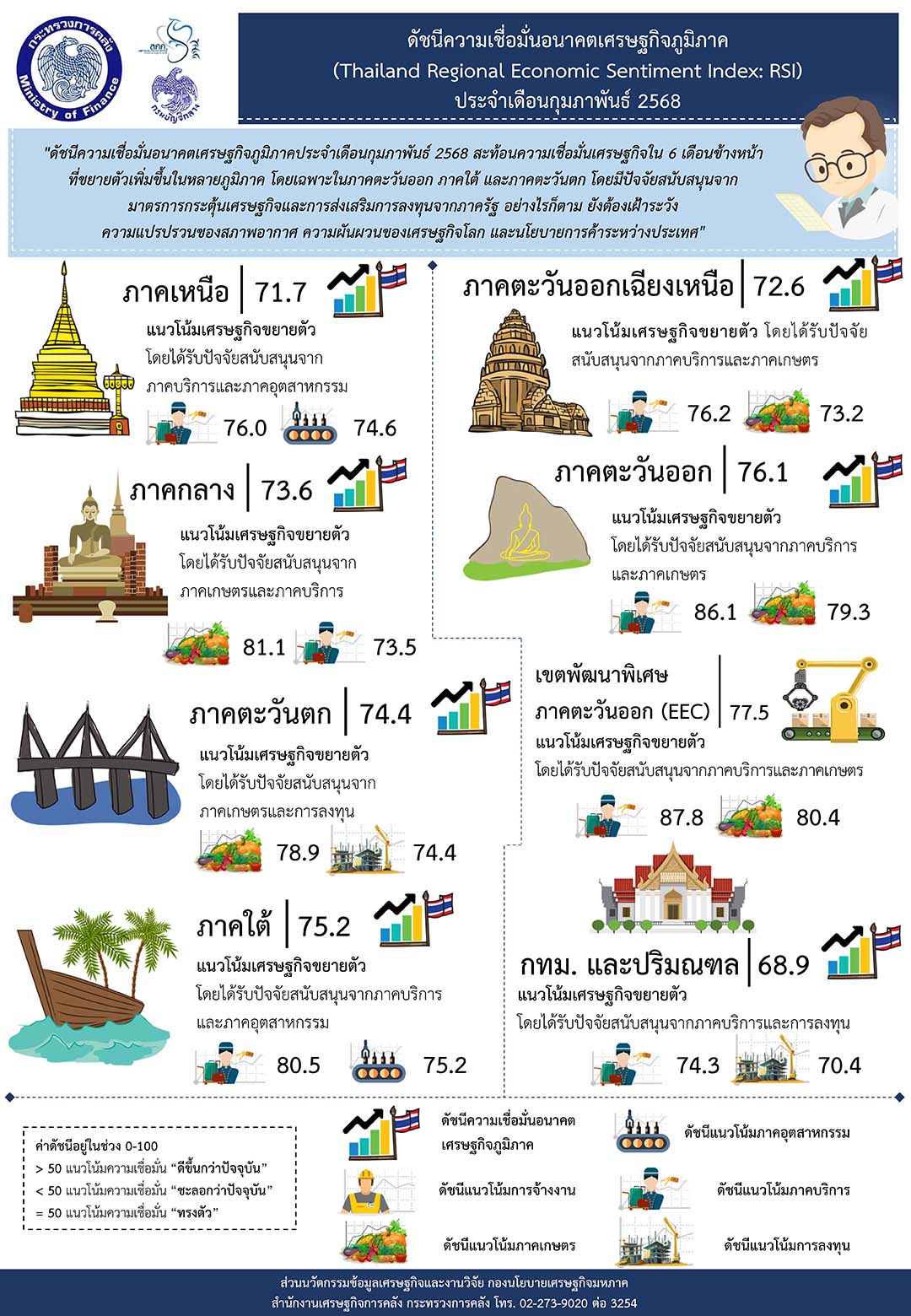 ภาวะเศรษฐกิจการคลังภูมิภาคม.ค.2568 ลงทุนชะลอตัว/ความเชื่อมั่นผู้บริโภคดีขึ้น