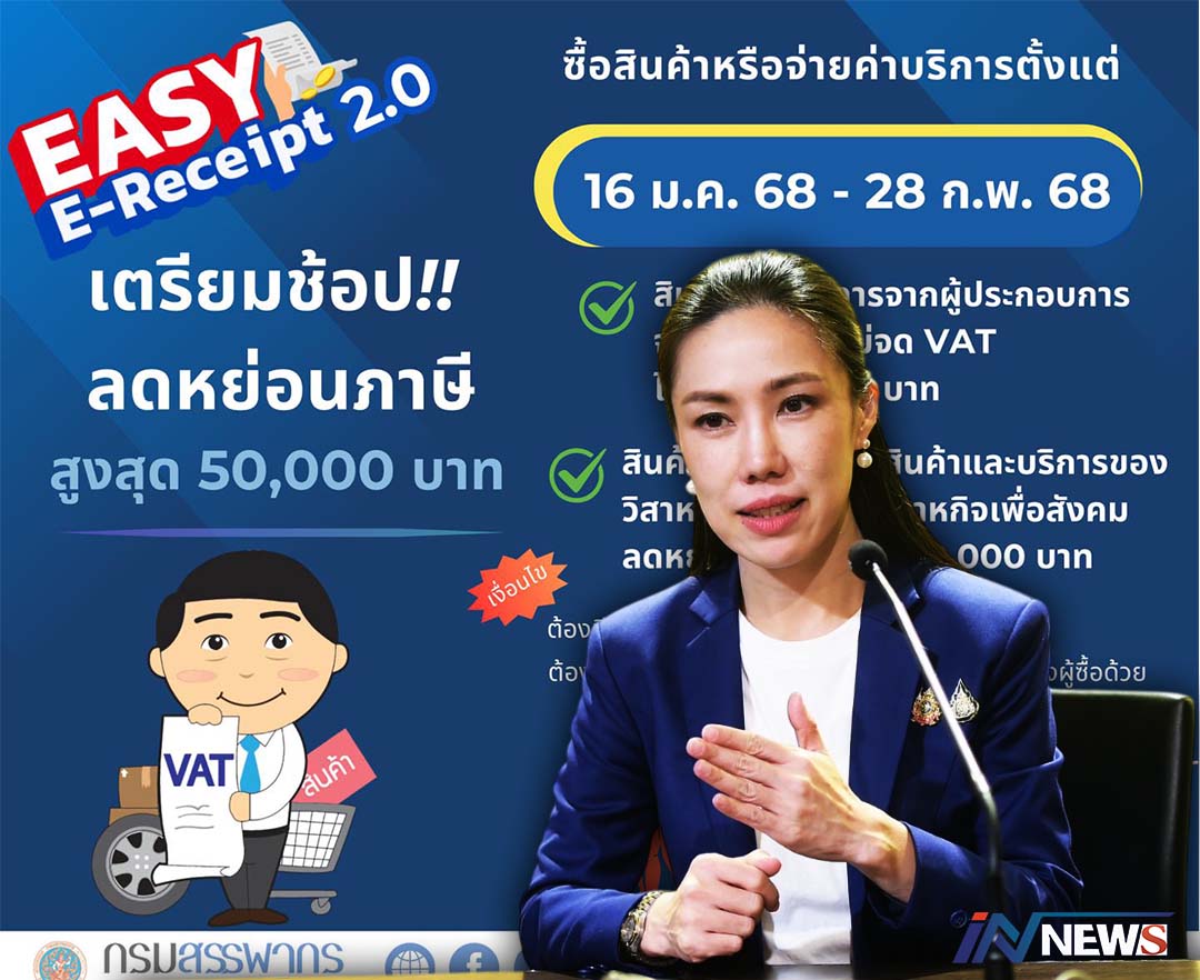 กรุงเทพฯ-เช็กด่วนมาตรการลดภาษีบุคคลฯเริ่มแล้ววันนี้ Easy-Receipt 2.0” เริ่มใช้จ่าย 16 ม.ค. – 28 ก.พ. 68 อย่...