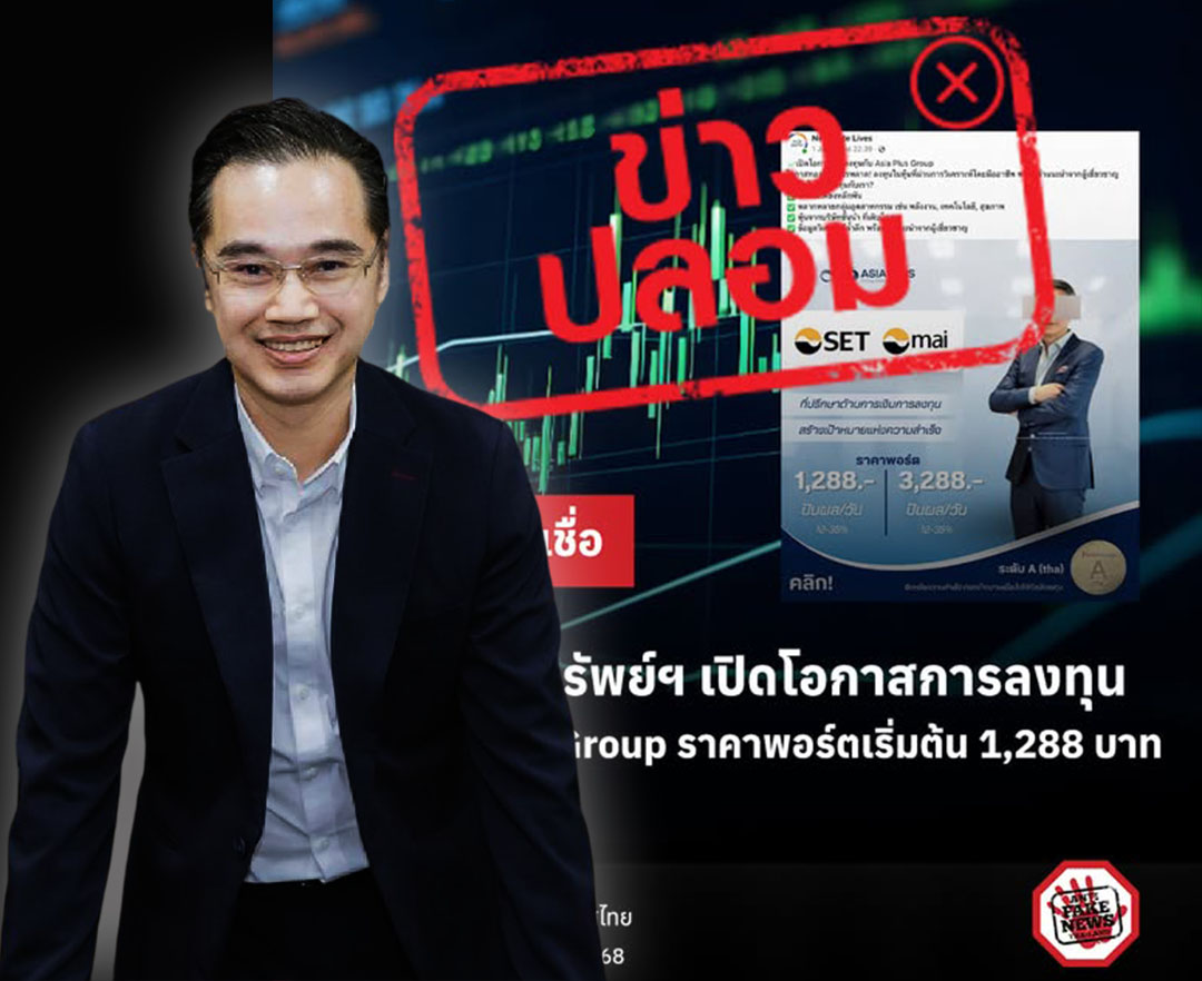 ดีอีเตือนภัยเพจปลอม'ตลาดหลักทรัพย์ฯ' เปิดโอกาสการลงทุนกับ Asia Plus Group ราคาพอร์ตเริ่มต้น 1,288 บา