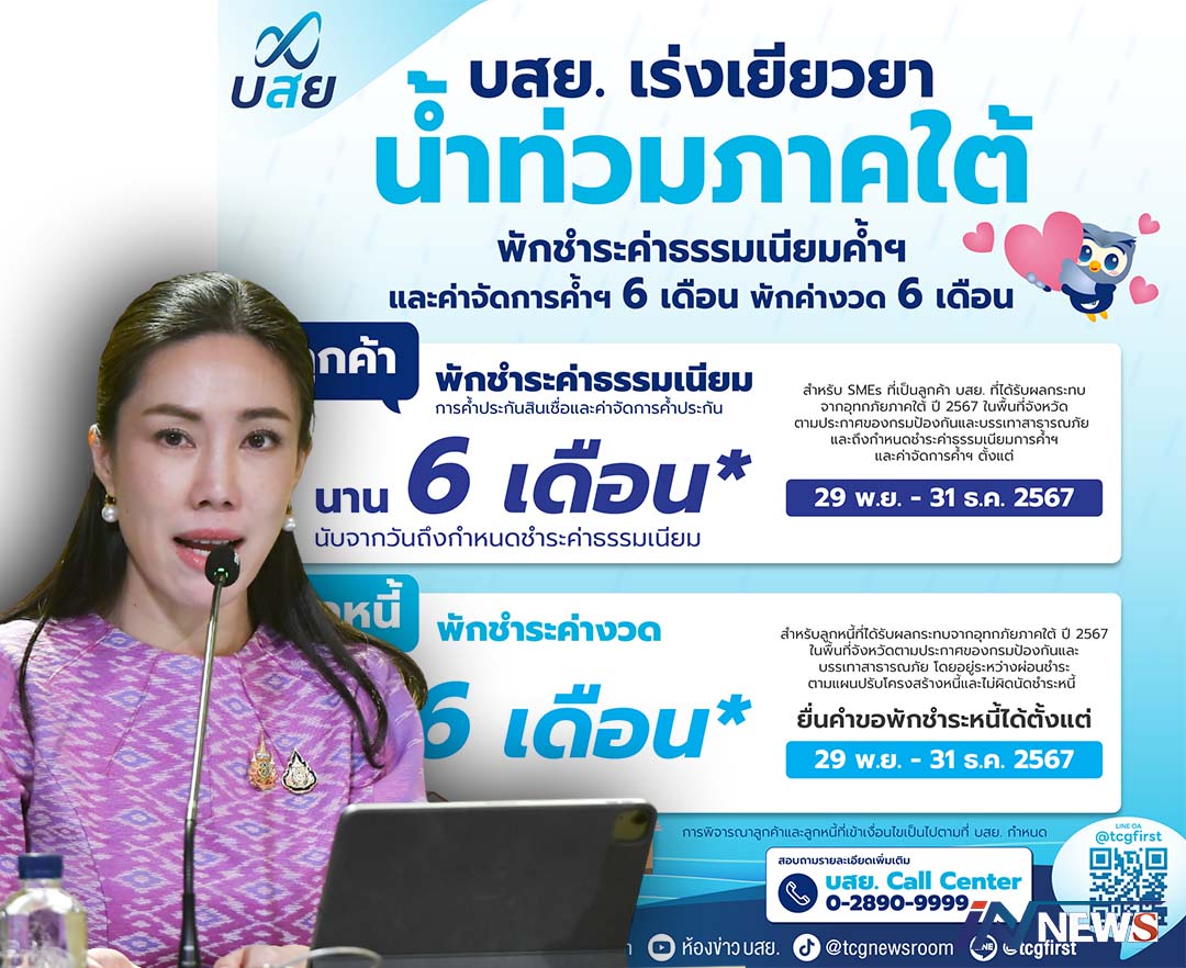 เผยมาตรการบสย.เยียวยาช่วยน้ำท่วมใต้ พักค่าธรรมเนียม-หนี้6เดือนฟื้นฟูSMEs