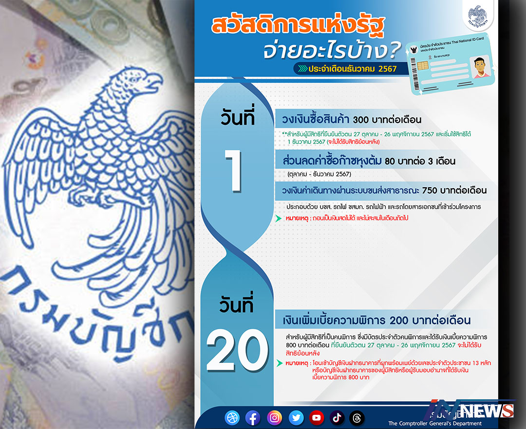 กรมบัญชีกลางอัปเดตค่าสวัสดิการแห่งรัฐ เดือนธันวาคม2567จ่ายอะไรบ้าง?