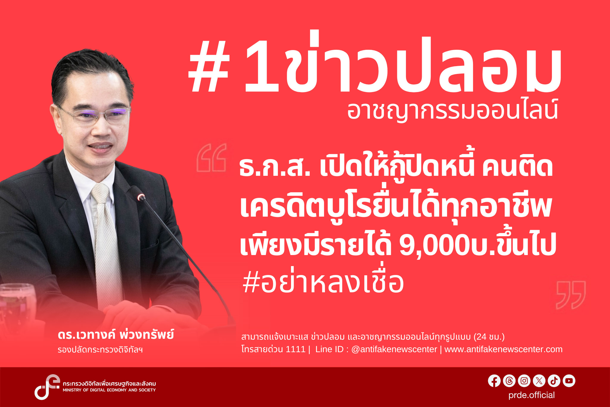 'ธ.ก.ส.'ให้กู้ปิดหนี้แก้เครดิตบูโรทุกอาชีพ รายได้9พัน/ดีอี.เตือนขออย่าเชื่อ-แชร์