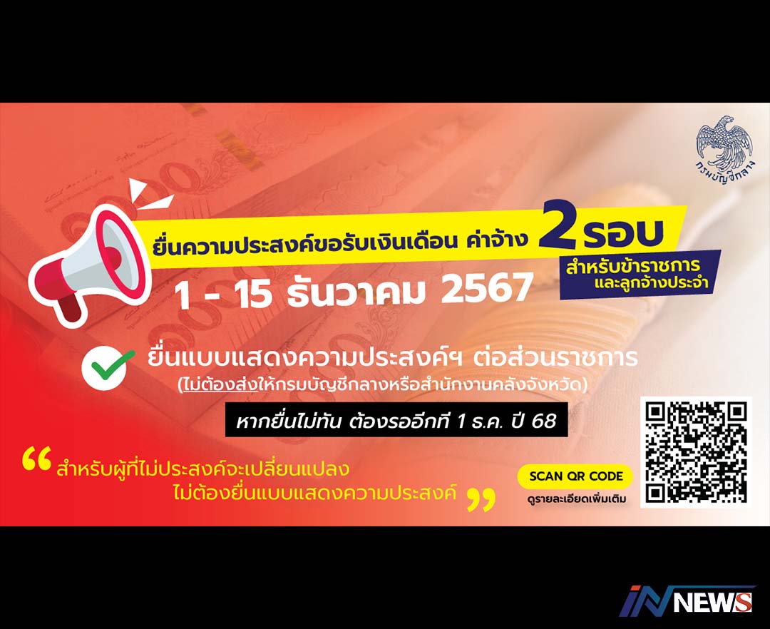 กรมบัญชีกลางแจ้งขรก.และลูกจ้างประจำ ขอรับเงินเดือน2รอบให้ยื่นใน1-15ธ.ค.นี้
