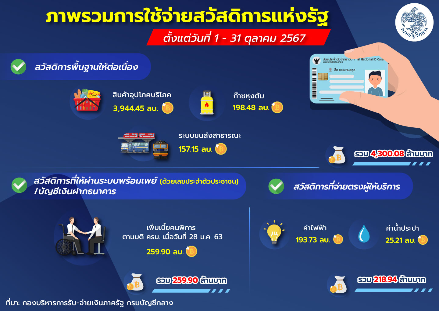 กรมบัญชีกลางอัปเดตสวัสดิการแห่งรัฐ เดือนพ.ย.67จ่ายอะไรบ้าง