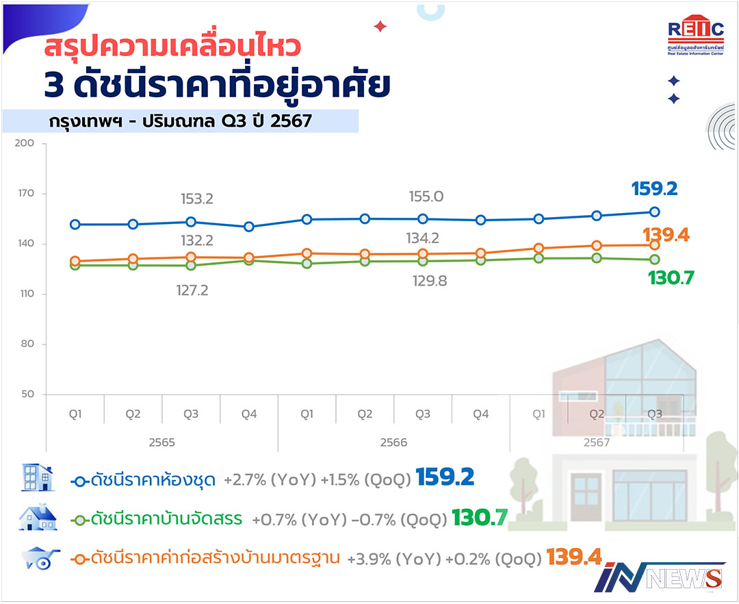 กรุงเทพฯ-รายงานดัชนีราคาบ้านจัดสรรใหม่และห้องชุดใหม่ที่อยู่ระหว่างการขายในกรุงเทพฯ และปริมณฑล ไตรมาส 3 ปี 2567 พบทิศทางก...