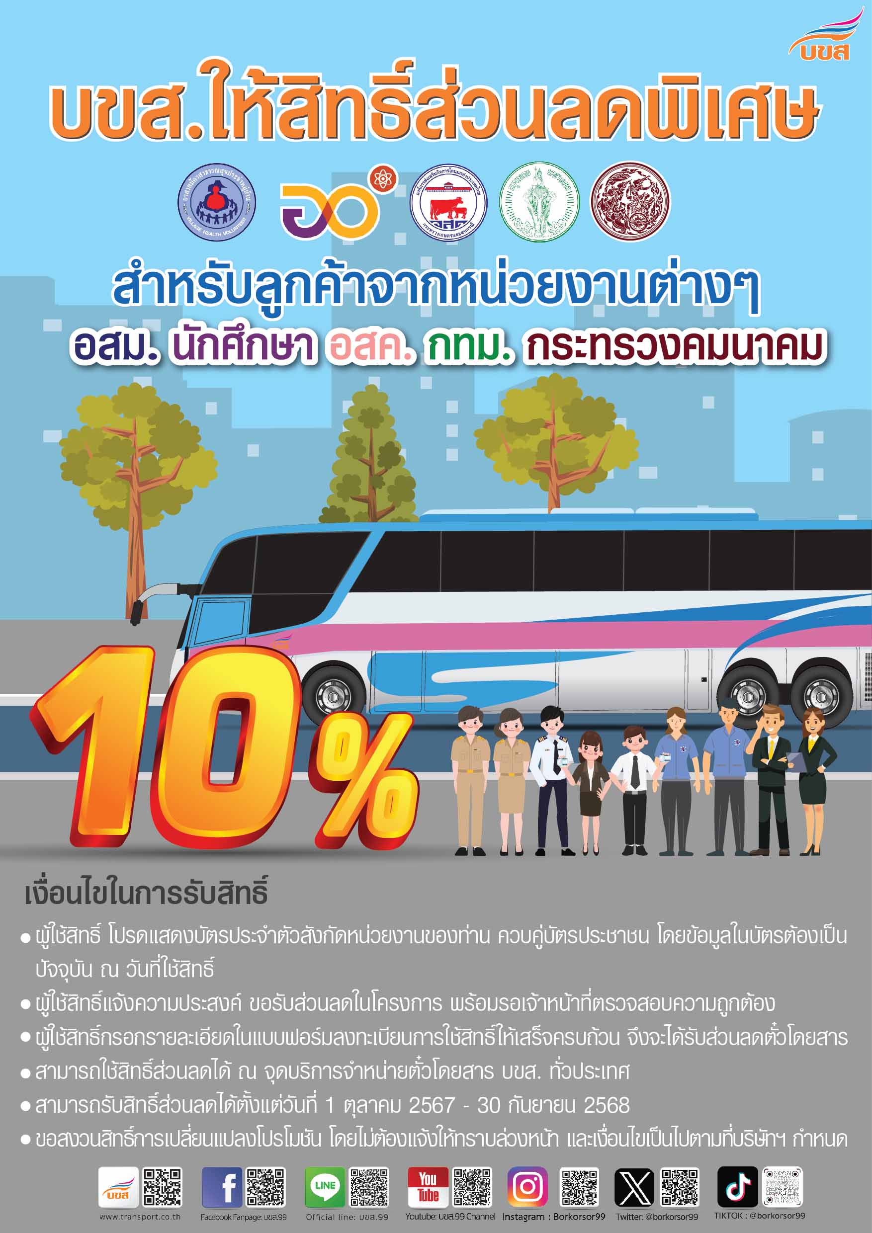 กรุงเทพฯ-“สุรพงษ์” มอบของขวัญ ต่ออายุส่วนลดค่าตั๋วรถ บขส. 10% ให้นักเรียน - นักศึกษา - อสม. - กลุ่มพันธมิตร ...