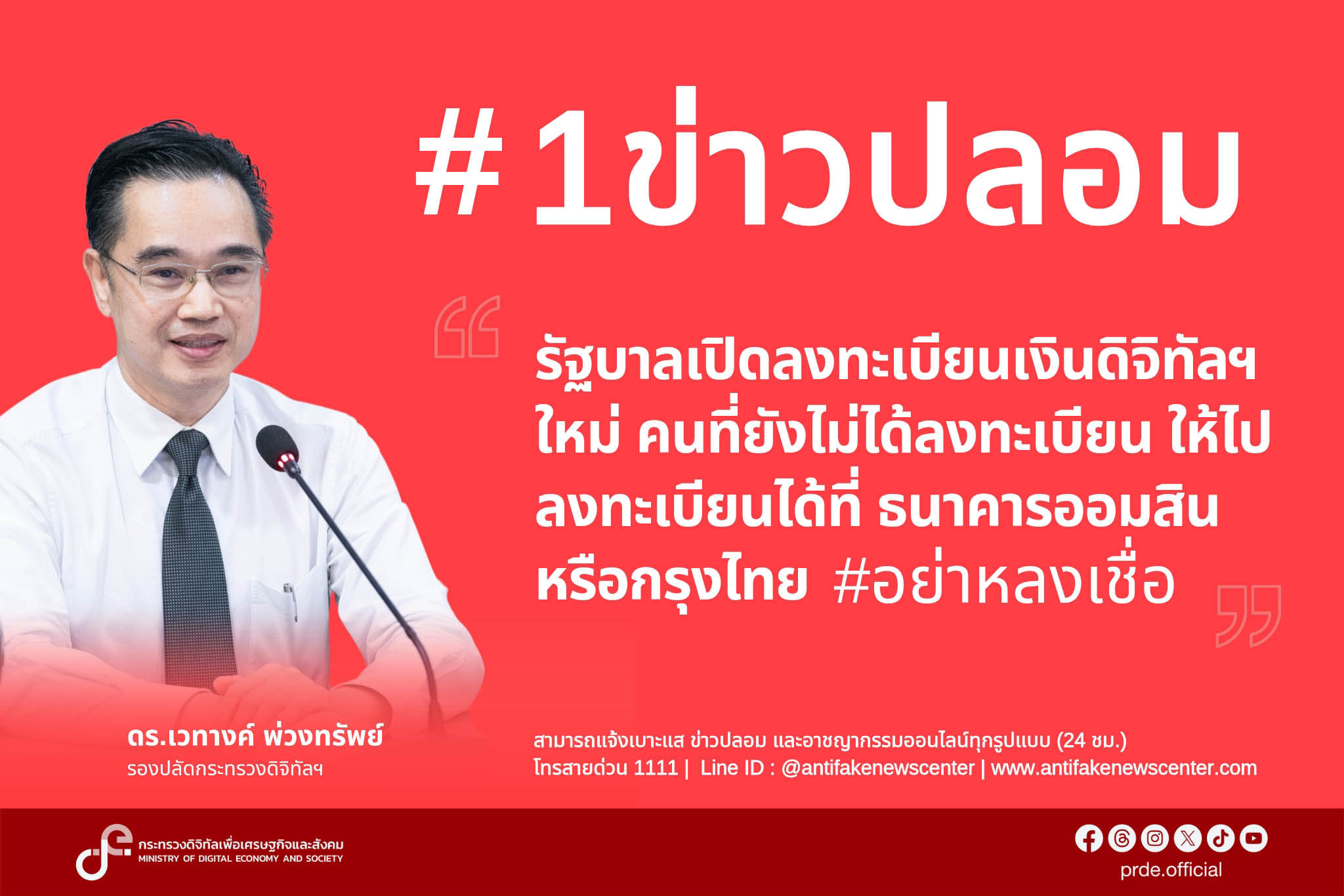 ดีอีเตือนอย่าเชื่อ-แชร์ข่าวปลอมออนไลน์ 'รัฐฯเปิดลงทะเบียนดิจิทัลวอลเล็ตใหม่'