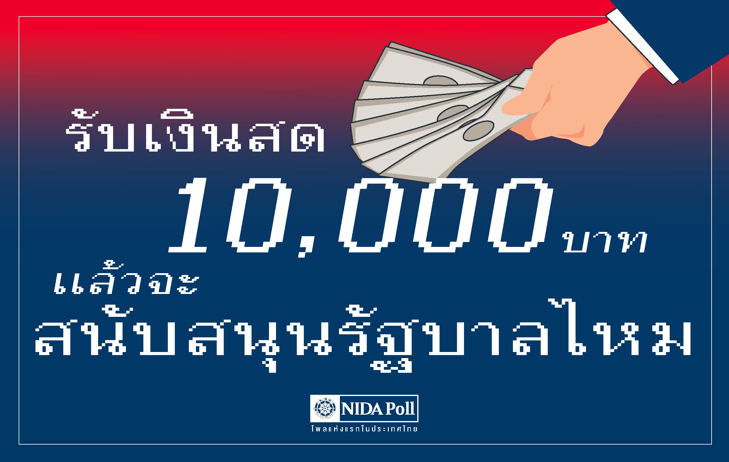 'นิด้าโพล'เผยผลสำรวจผู้ได้รับเงินหมื่น สนับสนุนรัฐบาลน้อยกว่า'ยังไม่แน่ใจ'