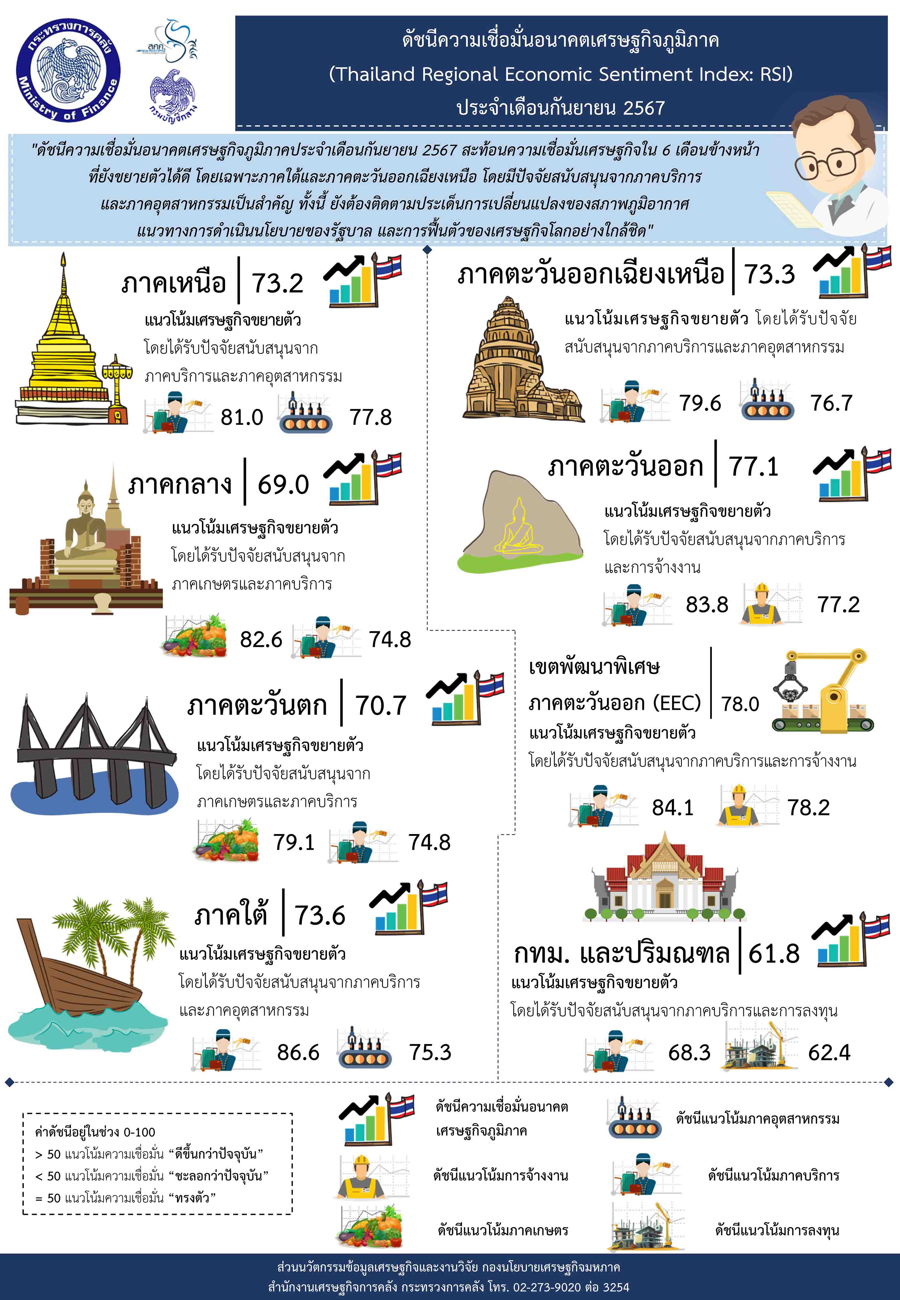 ดัชนีเชื่อมั่นอนาคตศก.ภูมิภาคในก.ย.67 สะท้าน6เดือนข้างหน้ายังขยายตัวได้ดี