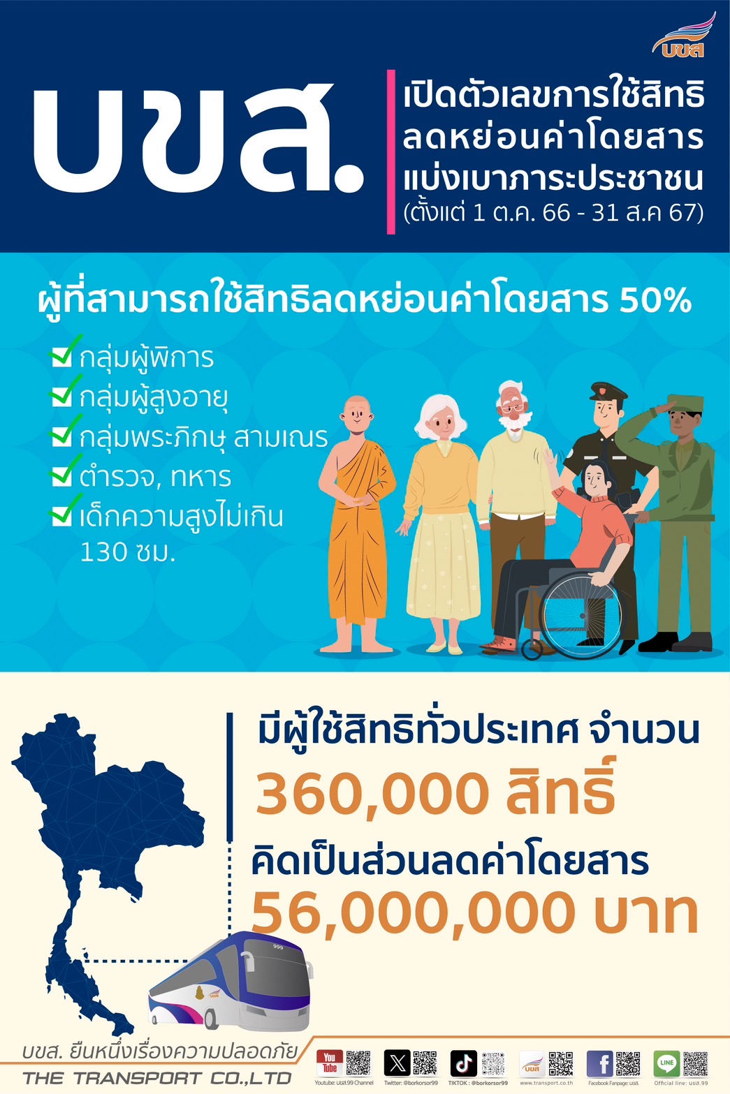 บขส.เผยตัวเลขผู้ได้ลดค่าโดยสารปี'67 กว่า3.6แสนคนแบ่งเบาภาระปชช.56ลบ.