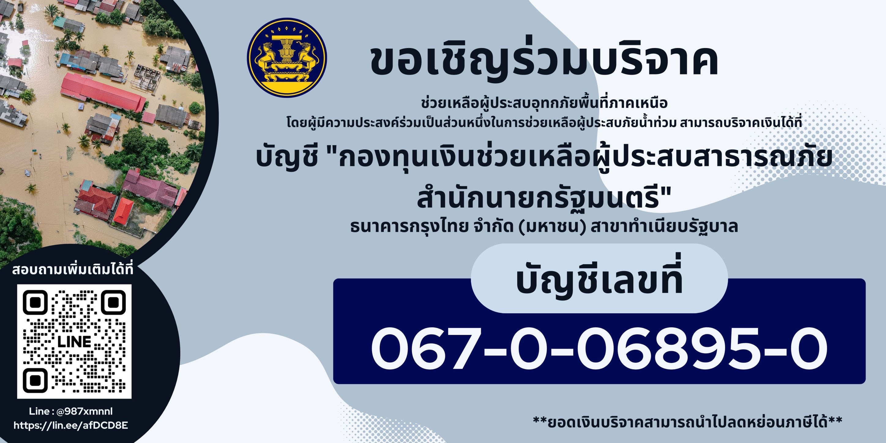 คกก.กองทุนฯผู้ประสบภัยสำนักนายกฯ ชวนร่วมบริจาคช่วยน้ำท่วมในภาคเหนือ