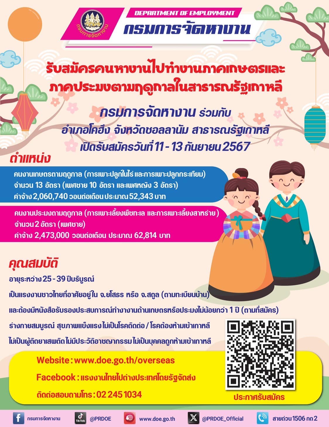 “พิพัฒน์” จัดส่งทำงานเกาหลีต่อเนื่อง ภาคเกษตร ประมง รับสมัครด่วน 11 - 13 ก.ย. นี้ เงินเดือน 6.2 หมื่น