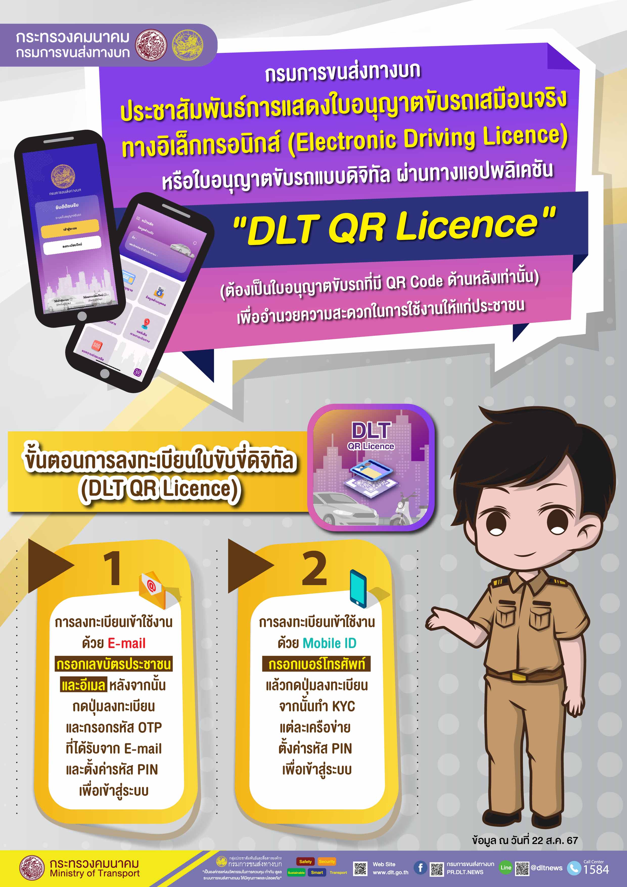 ขบ.แสดงใบขับขี่แบบดิจิทัลผ่านแอปฯ DLT QR Licenceต้องมีQR Codeด้านหลัง