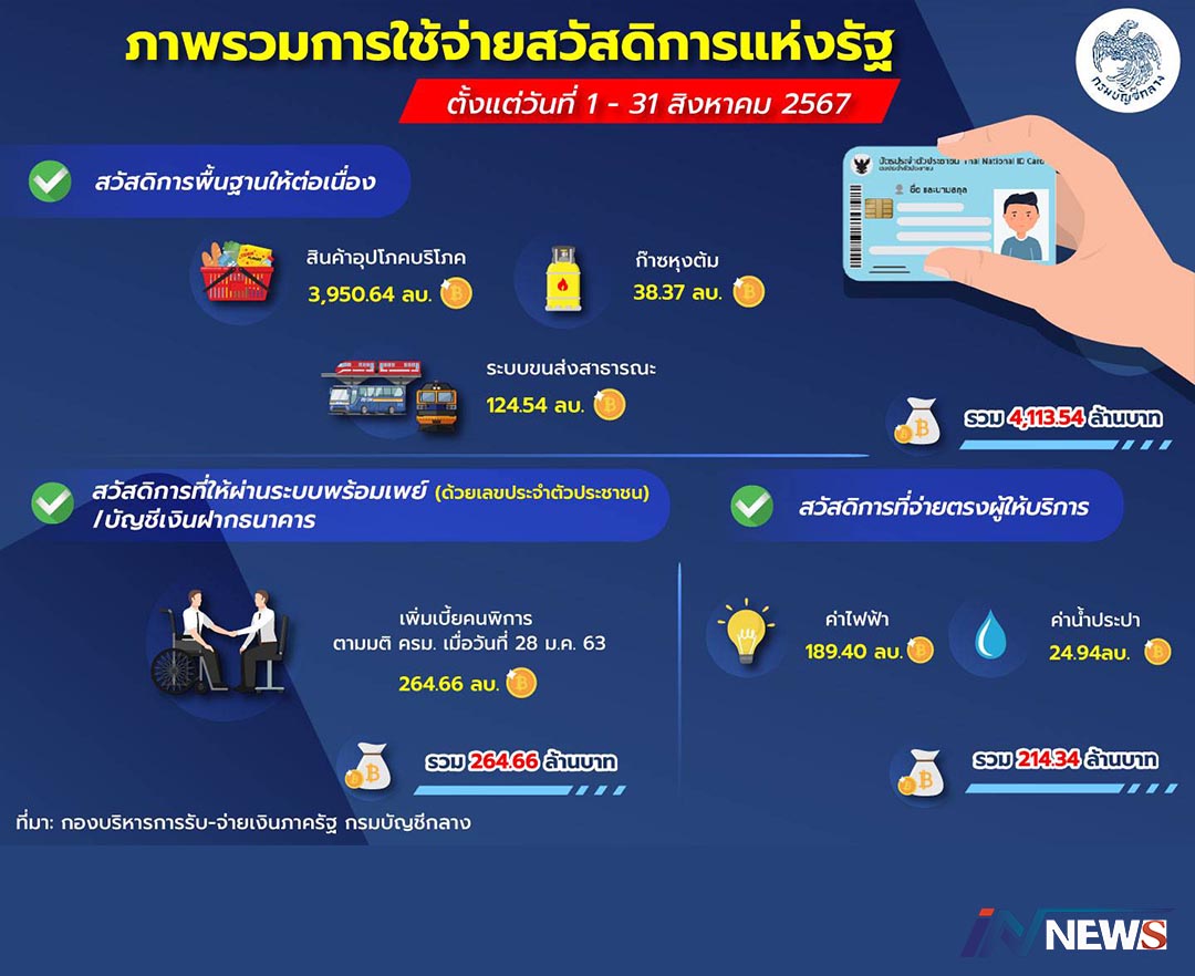 กรมบัญชีกลางอัปเดตสวัสดิการแห่งรัฐ เดือนกันยายน2567จ่ายอะไรบ้าง