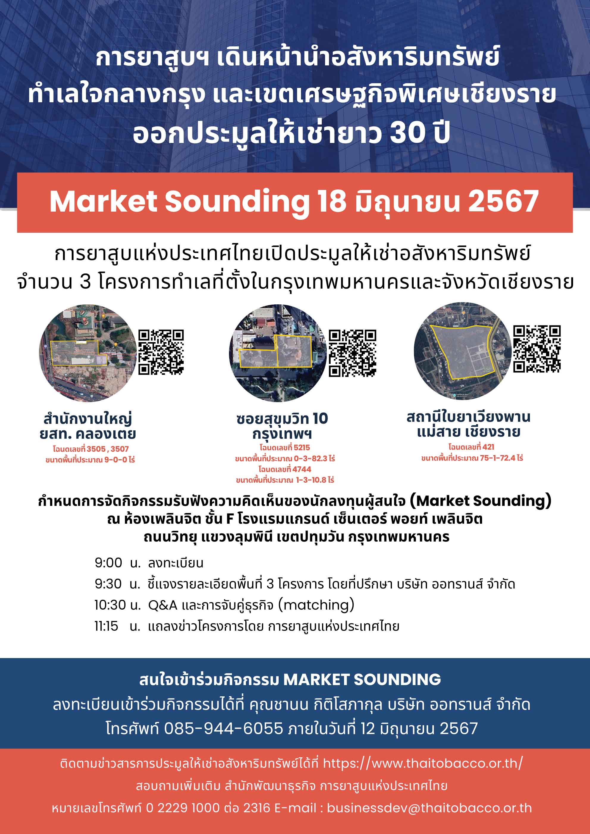 'ยาสูบฯ'เปิดประมูลให้เช่าที่ดินกลางกรุง 3โครงการที่คลองเตย-เชียงรายนาน30ปี