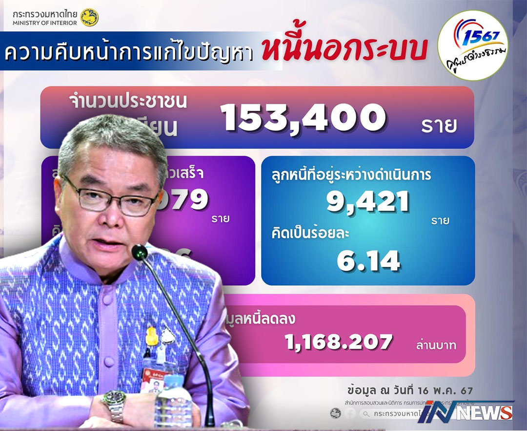 รัฐฯเดินหน้าแก้หนี้นอกระบบ1.4แสนราย มูลหนี้ลดลง1.1พันล้านบาทจี้เร่งไกล่เกลี่ย