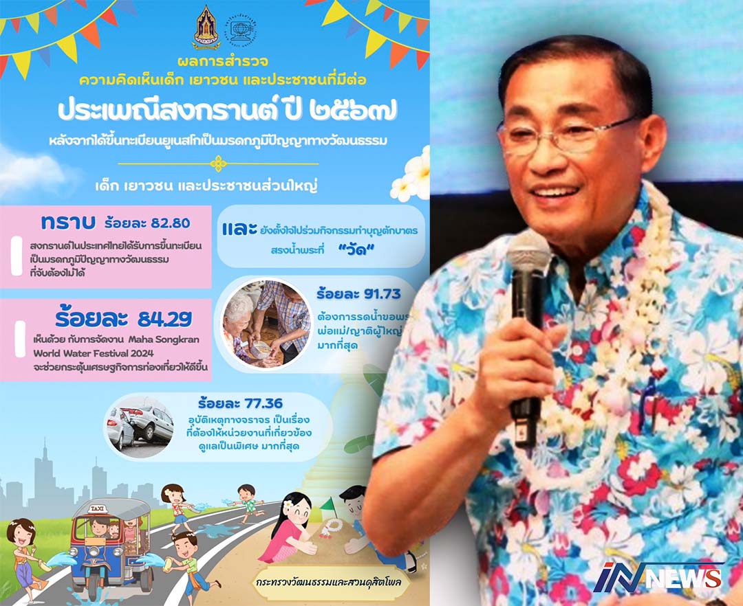 ก.วัฒนธรรมเผยผลโพลสงกรานต์ปี2567 ไปทำบุญ71%-รดน้ำดำหัวพ่อแม่91%