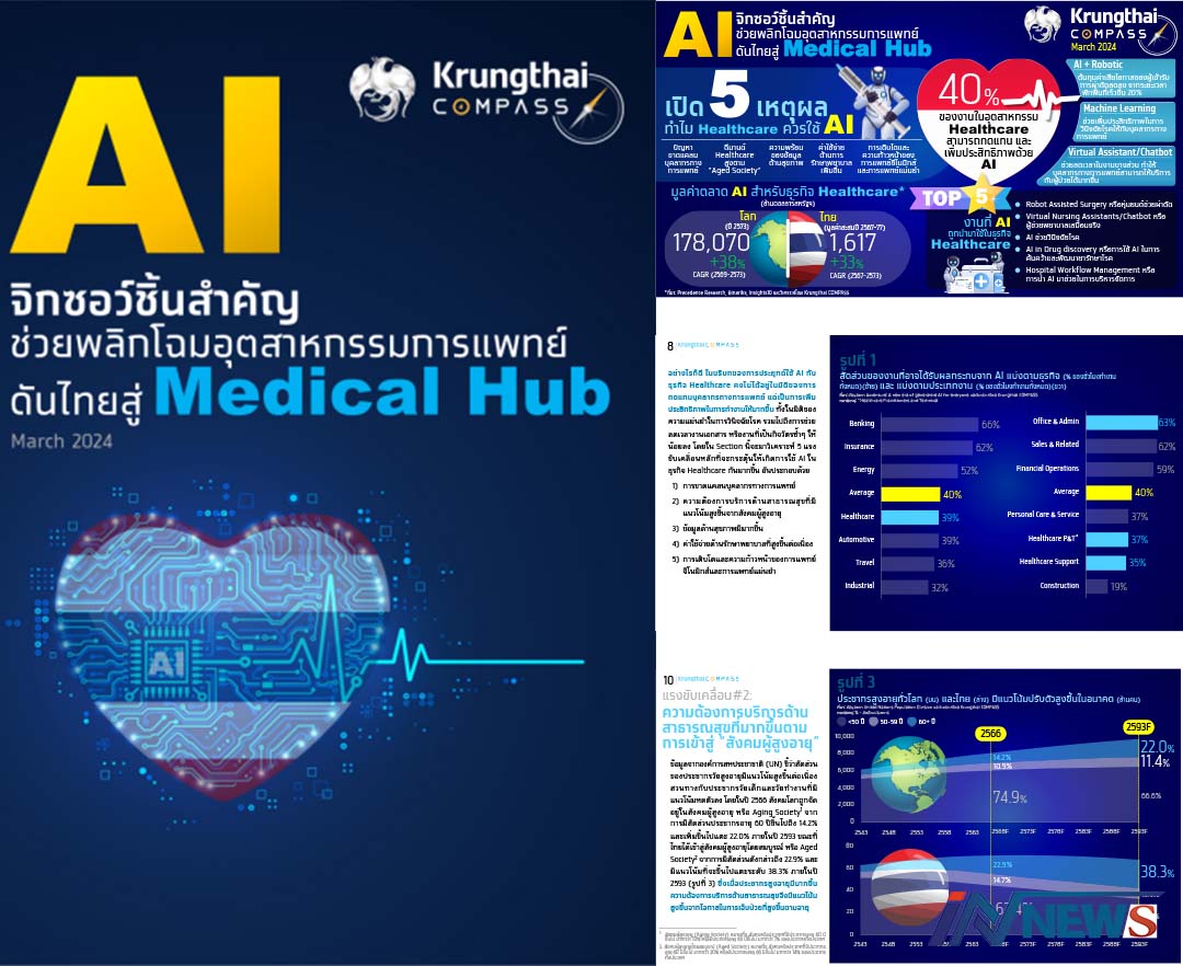 กรุงเทพฯ-Krungthai COMPASS ชี้ เทคโนโลยี AI จะเป็นจิกซอว์ชิ้นสำคัญที่เข้ามาช่วยยกระดับและเติมเต็มให้อุตสาหกรรม การแพทย์ข...