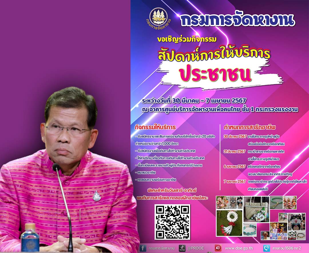 รัฐฯเปิดสัปดาห์'เพื่อคนหางาน'รับ1พันคน ดึง20บริษัทคัดเลือกเริ่ม30มี.ค.-7เม.ย.นี้