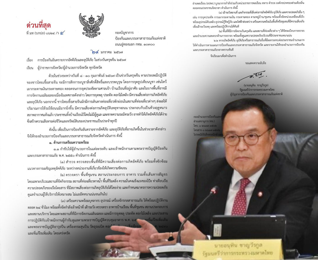 มท.1กำชับผู้ว่าฯทุกจังหวัดเตรียมป้องกัน อันตรายจากอัคคีภัยช่วงตรุษจีน2567