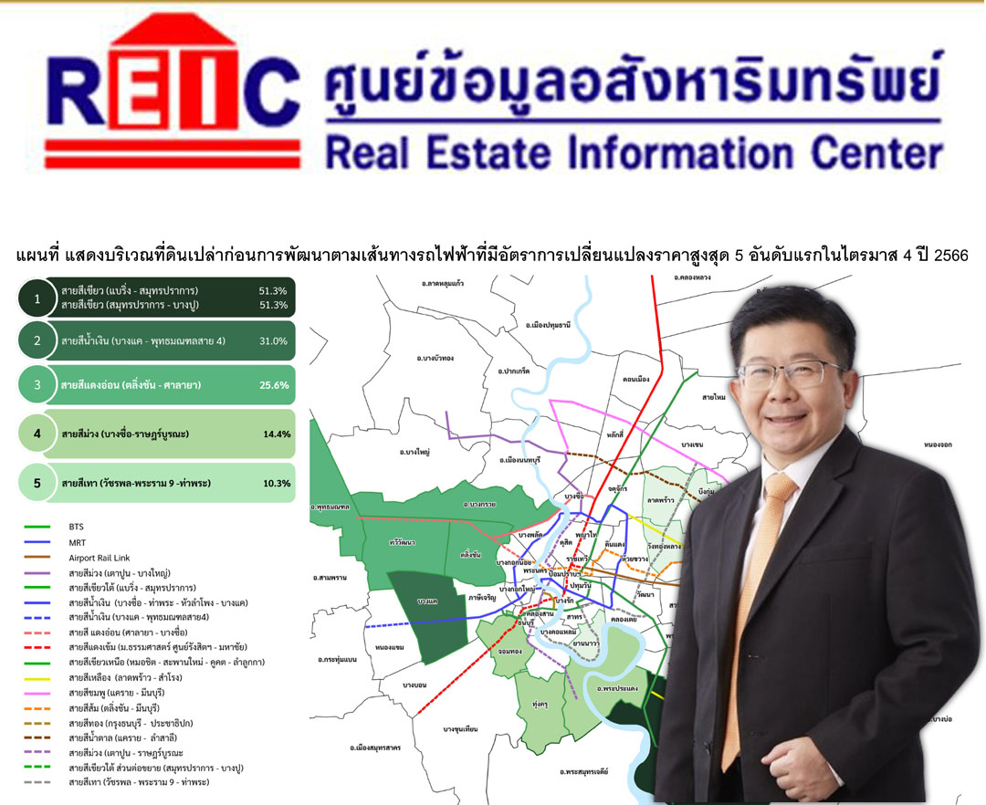 กรุงเทพฯ-REIC รายงานดัชนีราคาที่ดินเปล่าก่อนการพัฒนา ในกรุงเทพฯ-ปริมณฑล ไตรมาส 4 ปี 2566 เพิ่มขึ้นร้อยละ 3.8 จากไตรมาสก่...