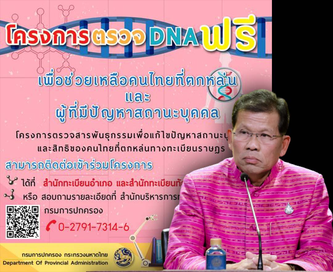 กรุงเทพฯ-รัฐบาล เชิญชวนคนไทยที่ตกหล่นทางทะเบียนราษฎร ร่วมโครงการตรวจ DNA แก้ไขปัญหาสถานะและสิทธิของคนไทยที่ตกหล่นทางทะเบ...