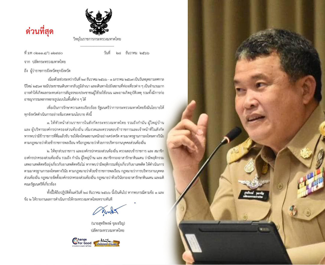 ปลัดมท.สั่งการผู้ว่าฯทั่วประเทศเข้มงวด หากพบขรก.มหาดไทยดื่มแล้วขับจัดหนัก