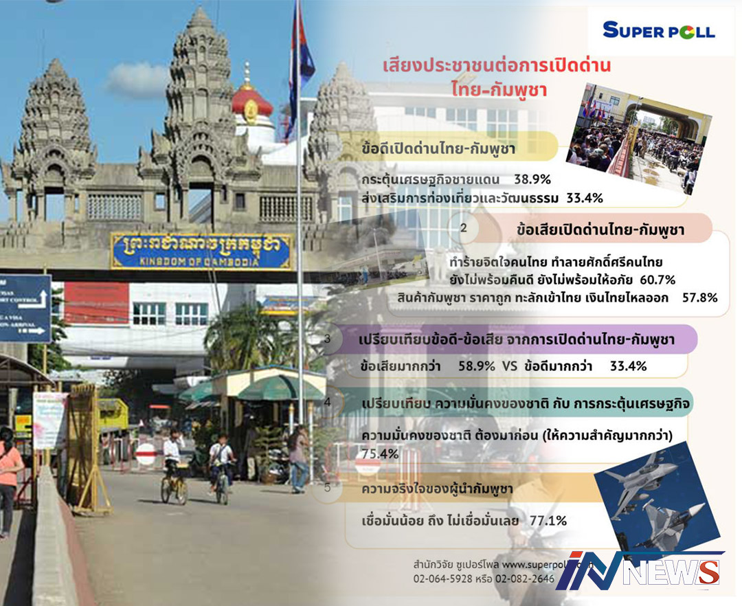 คนไทย60%รับไม่ได้'เปิดด่านไทย-เขมร' ชี้ยังไม่เชื่อมั่นในความจริงใจของกัมพูชา
