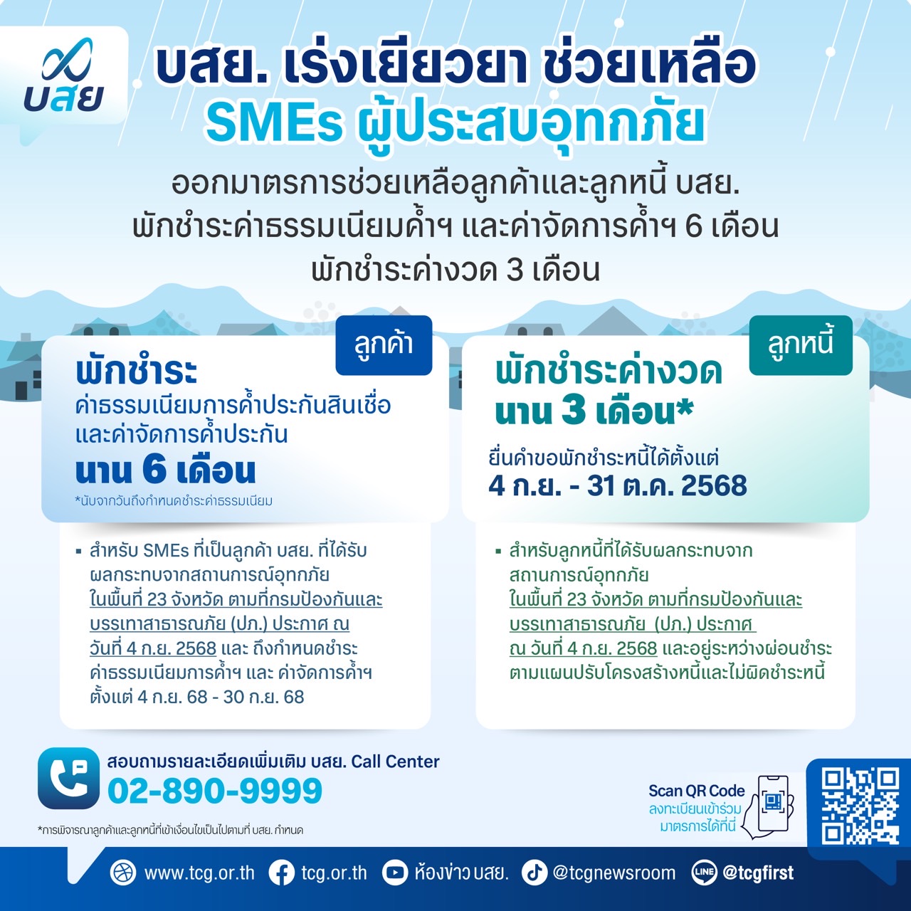 บสย.พักจ่ายค่าต๋ง-ค่าค้ำฯ-ค่างวด6เดือน ช่วยผู้ประสบอุทกภัยทั้ง'ลูกค้าและลูกหนี้'