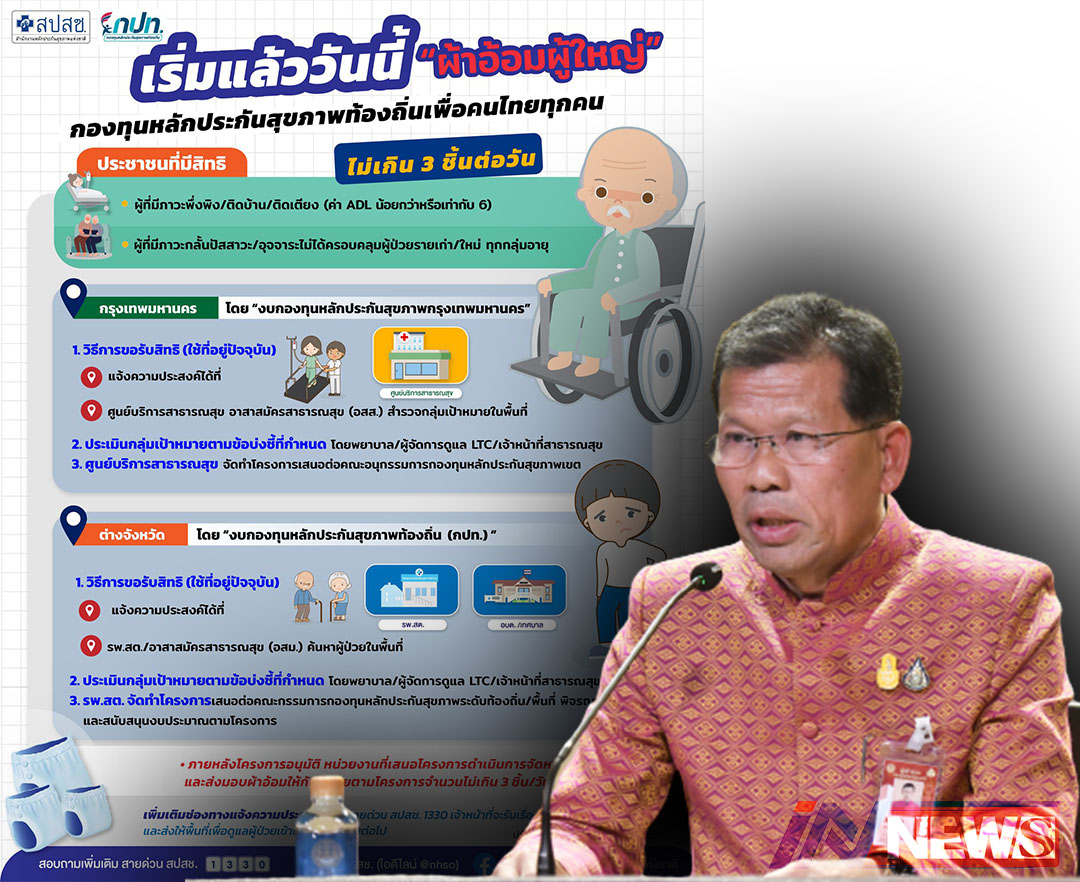 กรุงเทพฯรัฐบาลเชิญชวนผู้ป่วยติดเตียง ลงทะเบียนรับ “ผ้าอ้อมผู้ใหญ่” ในต่างจังหวัดรับได้จากกองทุนหลักประกันสุข...