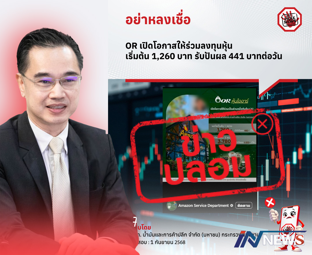 'ดีอี'เตือน'โจรออนไลน์'เปิดบัญชีปลอม ชักชวนลงทุนหุ้น'OR'ระวัง!เสี่ยงสูญเงิน