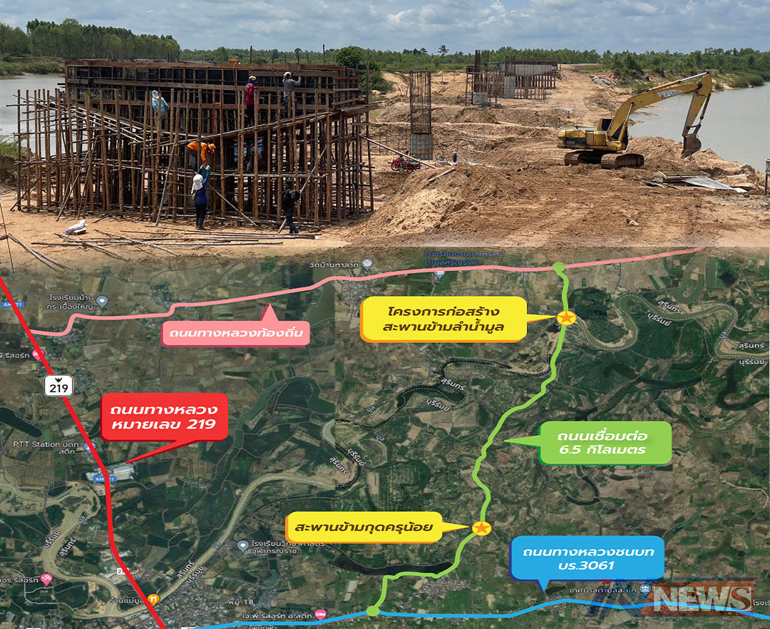 กรุงเทพฯ-กรมทางหลวงชนบท (ทช.) กระทรวงคมนาคม รายงานความคืบหน้าโครงการก่อสร้างสะพานข้ามลำน้ำมูล ตำบลสะแก อำเภอสตึก จั...