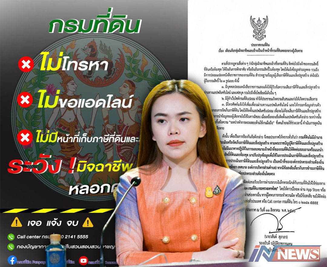 เตือนภัยมิจฉาชีพอ้างหน่วยงานรัฐดูดเงิน กรมที่ดินย้ำไม่มีจนท.ติดต่อเรื่องภาษีฯ