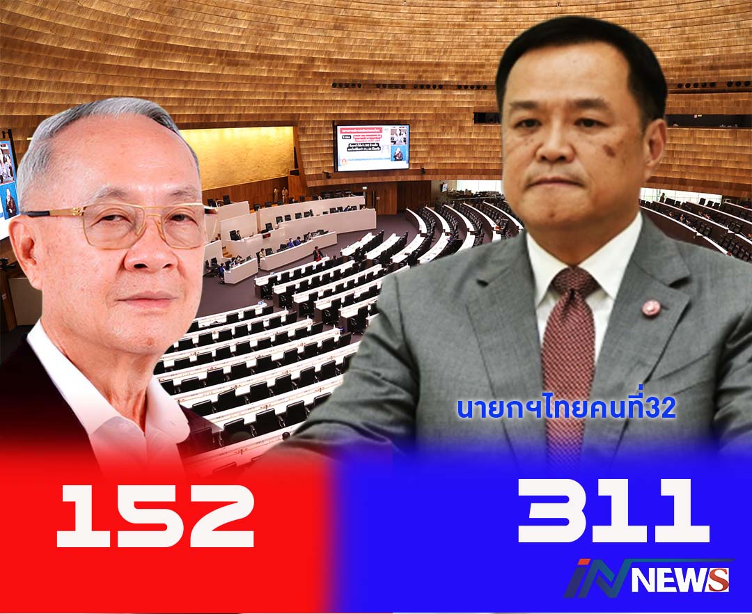 'อนุทิน'นายกฯคนที่32ของประเทศไทย โหวตท่วมท้น311เสียง/เอกชนจี้ฟื้นศก.