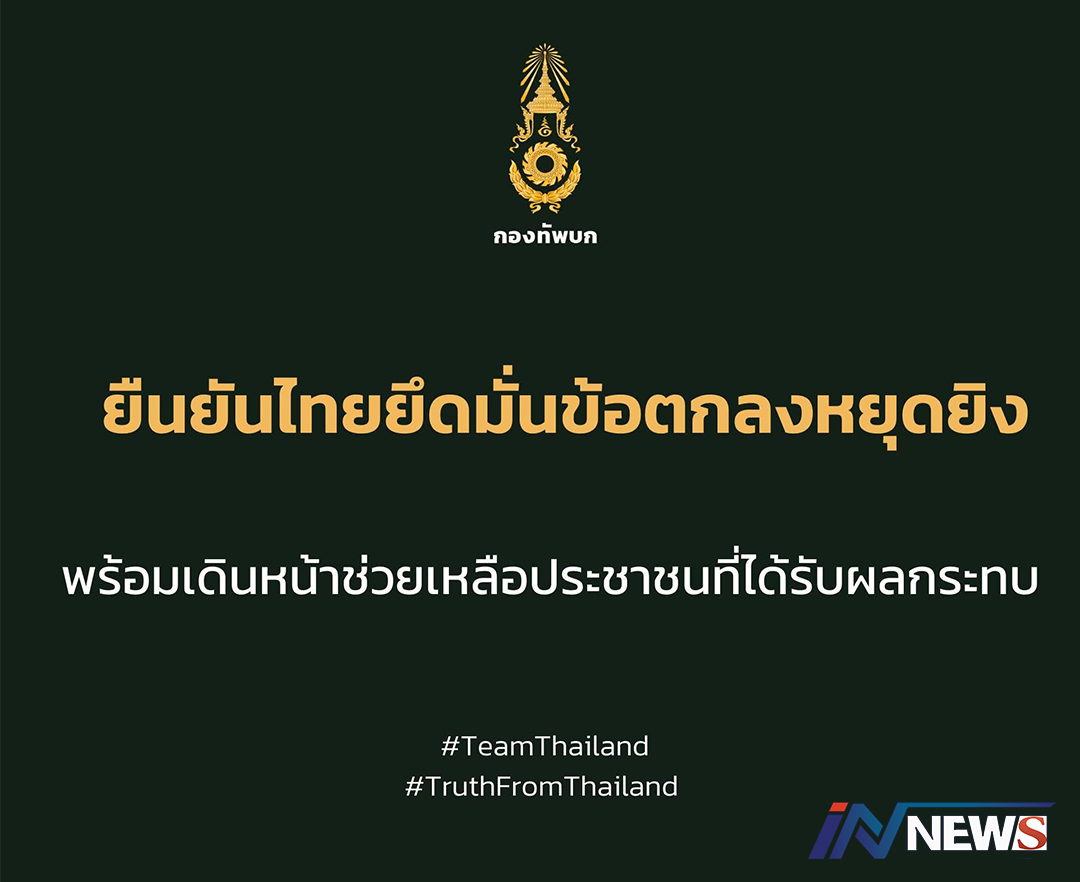 กรุงเทพฯ-ทบ. โต้ถ้อยแถลงกัมพูชายืนยันไทยยึดมั่นข้อตกลงหยุดยิง กฎหมายระหว่างประเทศ พร้อมเดินหน้าช่วยเหลือประชาชนที่ได้รับ...