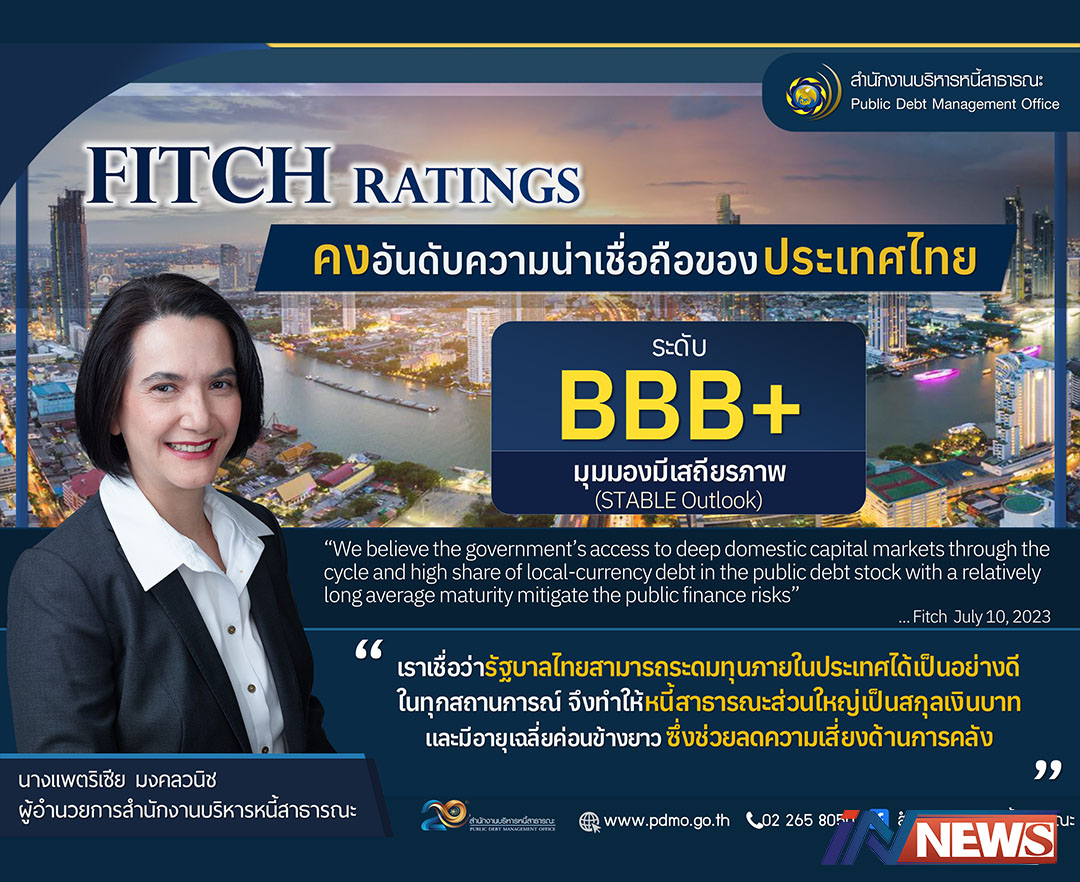 Fitch Ratingsคงอันดับของไทยที่BBB+ คงความน่าเชื่อถือในระดับมีเสถียรภาพ