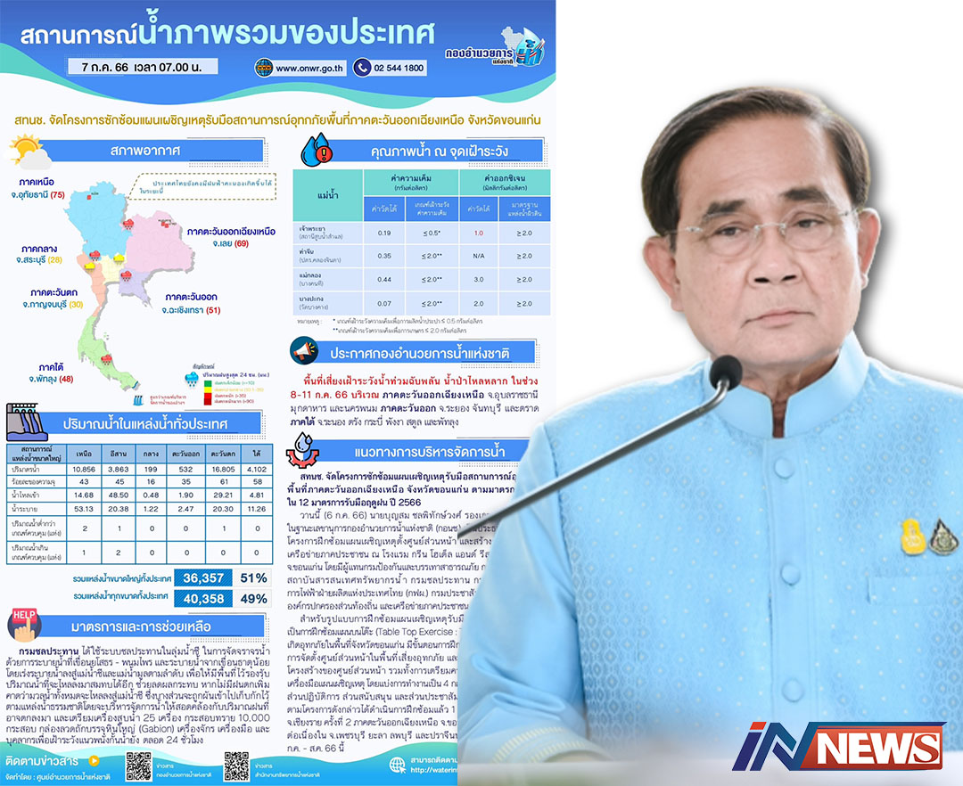 นายกฯเฝ้าติดตามพื้นที่เสี่ยงน้ำท่วม-แล้ง ล่วงหน้าตามคาดการณ์ONE MAP