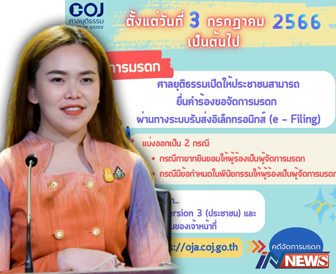 รัฐบาลปลื้มศาลยธ.เพิ่มความสะดวกปชช. ยื่นคำร้องขอจัดการมรดกผ่านe-Filing